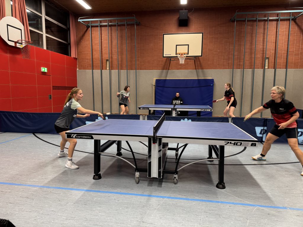 Emma Krämer (vorne) und Monika Werner trugen je zwei Einzelsiege zum 10:0 über Balzhausen beiDie Winterpause ist für das Damenteam kurz, denn schon am Samstag, 10. Januar 2026 geht es mit einer schweren Aufgabe weiter, steht doch dann das Auswärtsspiel beim Tabellenzweiten TSV Herbertshfen IV an.