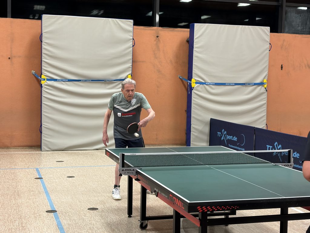 Mit 93 aktiv im Punktspielbetrieb: Albin Würmseher beim Auswärtsspiel in LauingenTTF Unteres Zusamtal III - TSV Rain V 8:2