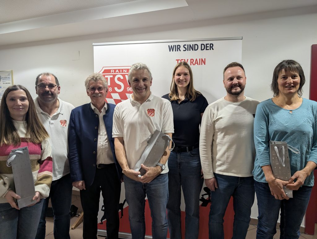 „Ich freue mich, dass nun eine richtig gute neue Vorstandschaft gewählt worden ist, die für unseren Verein eine perfekte Lösung darstellt!“ Mit diesen Worten übergab Matthias Bohn sein Amt an Gerhard Martin, nicht ohne das Versprechen abzugeben, die neue Vorstandschaft gerne mit Rat und Tat zu unterstützen. Die erste Amtshandlung des neuen Vorstands bestand in einer Danksagung an die ausgeschiedenen Vorstandsmitglieder Bohn, Claudia Kleinle und Anja Forster, die intensive Jahre hinter sich hätten. Er hoffe, den mit der Wahl verbundenen Vertrauensvorschuss rechtfertigen zu können, so Gerhard Martin und appellierte an alle Vereinsmitglieder, weiterhin zusammenzustehen, damit das breite Sportangebot des 1.400-Mitglieder-Vereins auch weiterhin genutzt und organisiert werden kann „und wir immer stolz auf den TSV Rain sein können.“