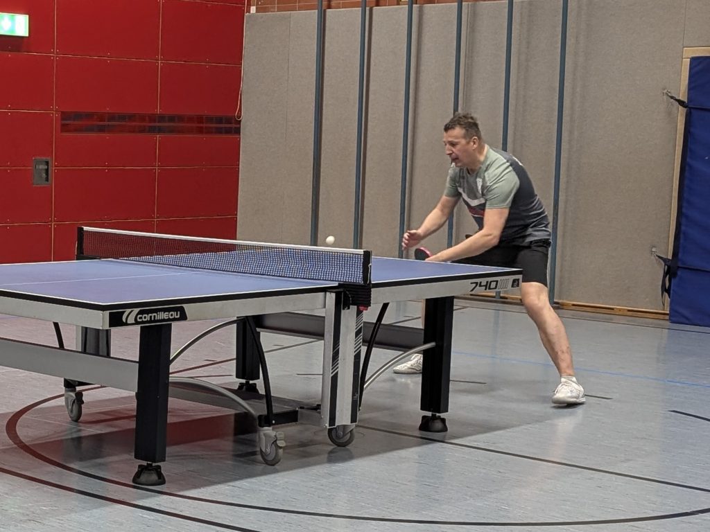 Auf die Folter gespannt wurden die TSV-Anhänger in der Grundschulturnhalle gleich zu Spielbeginn: Genz/Nothofer ließen zwar gegen Lupic/Gross nie einen Zweifel aufkommen und gewannen klar und deutlich mit 3:0, doch umso spannender machten es Wittmeier/Klein im Parallelspiel gegen Voigt/Wiedemeyer. Nach fünf wechselhaften Sätzen sicherten sie ihrem Team die 2:0-Führung, die aber nicht lange hielt. Gerhard Wittmeier zeigte gegen Nedim Lupic eine durchaus gute Leistung, doch das Augsburger Talent entschied die Partie im vierten Satz beim Stand von 10:9 mit einem unglaublichen Schlag zu seinen Gunsten. Noch knapper verlief das Duell zwischen Marco Klein und dem Bayerischen Meister von 1982, Dieter Voigt. Der "Dauerbrenner" des Post SV glich mit seinem 11:9 im fünften Satz zum 2:2-Zwischenstand aus. Nun war es eine ausgeglichene Angelegenheit: Jürgen Genz zeigte nach überstandener Krankheit beim 3:1 gegen Michael Gross wieder klar aufsteigende Form, während Matthias Nothofer mit dem flinken Fabian Wiedemeyer seine liebe Mühe hatte und nie richtig ins Spiel fand. Richtig kritisch wurde es nach dem Duell der beiden "Einser": In einem sehenswerten Match musste auch Wittmeier dem Altmeister Voigt gratulieren, die Gäste lagen plötzlich mit 4:3 vorne. Doch zum Glück kam postwendend der Ausgleich: Klein gelang mit einem starken Auftritt gegen Lupic ein wichtiger Viersatzerfolg. So stand es 4:4, als die beiden letzten Partien des Tages aufgerufen wurden. Mannschaftsführer Nothofer ließ gegen Gross keinen Satz liegen und sicherte somit zumindest schon das Remis. Ganz spannend machte es am Nebentisch Genz. Die ersten beiden Sätze gingen an Wiedemeyer, doch dann steigerte sich der TSV-Dreier zu einer überragenden Leistung, riss zunächst den dritten Durchgang knapp in der Verlängerung an sich und gewann dann immer mehr die Oberhand zum letztlich siegbringenden 3:2-Erfolg.