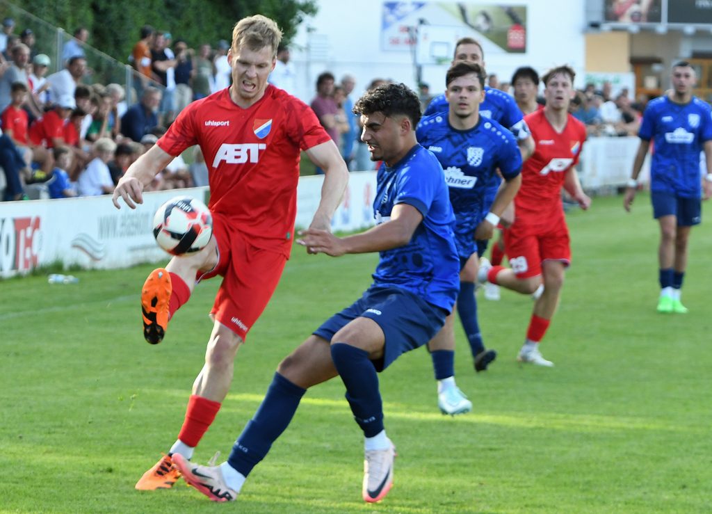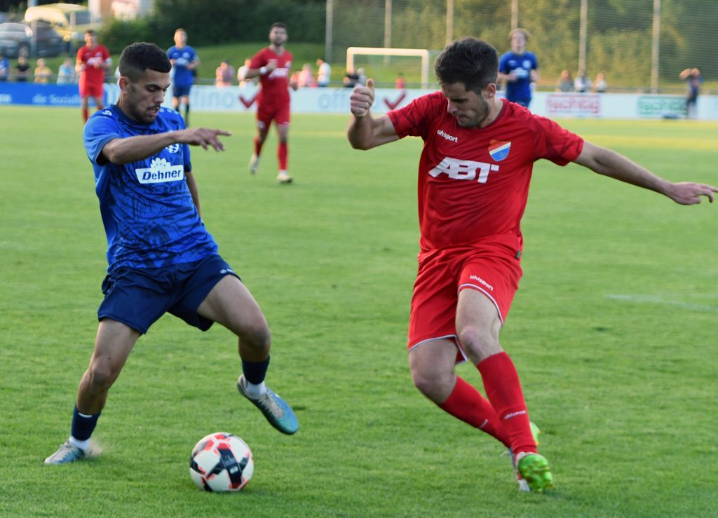 Das Spiel vor 660 Zuschauern in der ABT-Arena begann flott und die Blumenstädter hatten durch Sami Achir in der 12. Minute den ersten vielversprechenden Abschluss, doch aus 10 Meter traf er den Ball nur ungenau und dieser flog neben das Tor. Langsam kamen die Hausherren auch ins Spiel und tauchten gefährlicher vor dem Rainer Tor auf. Ein Distanzschuss von Kevin Haug segelte knapp am Gehäuse vorbei. Drei Zeigerumdrehungen später versuchte es Achim Speiser aus der Ferne, scheiterte aber am Rainer Keeper Florian Rauh. Mittlerweile bestimmten die Allgäuer das Spiel und hatten mehr Zug nach vorne. Kurz vor der Pause verfehlte ein Kopfball der Gastgeber sein Ziel haarscharf. Im Gegenzug dann die große Chance von Sami Achir, die Gäste in Führung zu bringen, doch sein vielversprechender Abschluss landet im Aus. Torlos ging es in die Halbzeitpause.