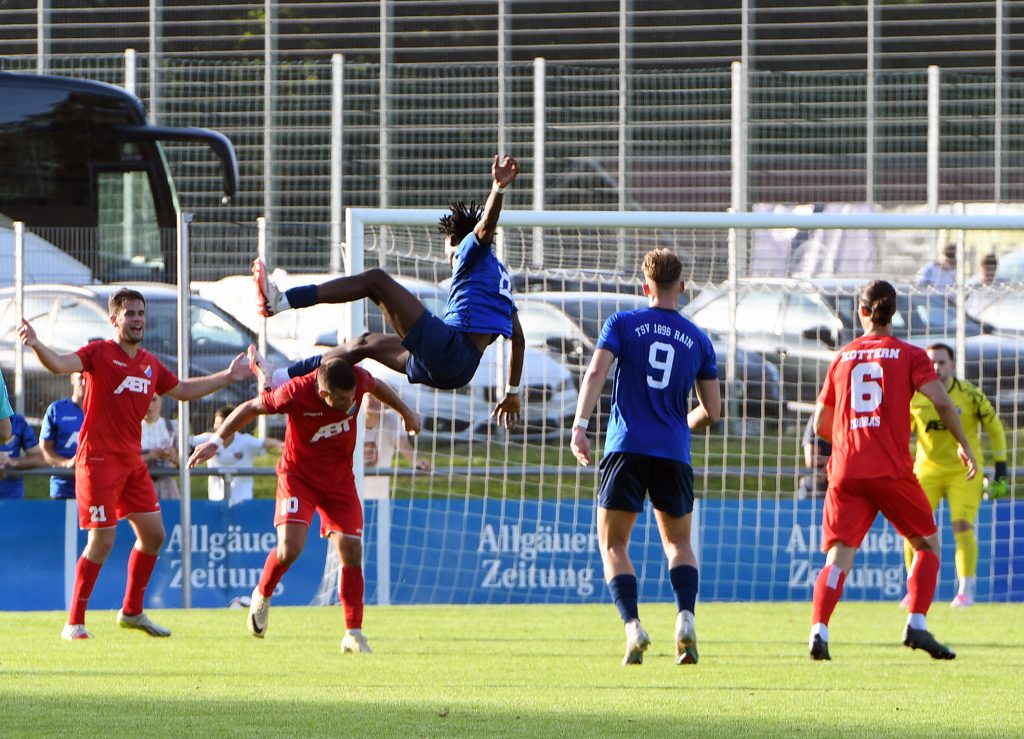Acht Minuten nach Wiederanpfiff gelang Jannik Schuster mit einem sehenswerten Schuss aus 16 Metern in den Winkel das 1:0 für die Tillystädter. Für die Allgäuer war dieser Gegentreffer wie ein Weckruf und sie erhöhten das Tempo. Nur fünf Minuten nach dem Gegentreffer der Ausgleich: Ein schnell vorgetragener Konter über die linke Seite und eine Hereingabe in die Mitte nutzte Filip Dobras und drückte den Ball zum Ausgleich über die Torlinie. In der Folge kamen die Blumenstädter wieder besser ins Spiel und hatten in der 75. Minute durch Jannik Schuster die große Chance zur erneuten Führung. Seinen Kopfball aus fünf Metern konnte der Allgäuer Torhüter jedoch parieren. In den letzten 10 Minuten spielten nur noch die Blumenstädter. Siegfried Kübler (87.) mit einem Fernschuss und Arsim Kardirolli (88.) kurz nach seiner Einwechslung mit einem Schlenzer konnten ihre Chancen nicht nutzen. In der Nachspielzeit das 2:1 für die Hausherren: Das Tor, ein Spiegelbild des ersten Treffers, erzielte der eingewechselte Samuel Barth, der eine Hereingabe von der linken Seite im Zentrum zum 2:1-Siegtreffer und gleichzeitig Endstand einschob. Die Gastgeber brachen in Jubel aus und feierten anschließend das 150-jährige Bestehen ihres Vereins. Trotz der unglücklichen Niederlage zeigte die junge Mannschaft des TSV Rain eine starke Leistung, die Mut für die kommenden Aufgaben macht.