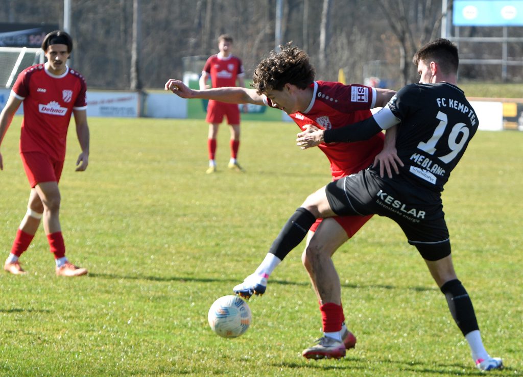 Die Gäste aus dem Allgäu legten los wie die Feuerwehr und setzten die Hausherren von Beginn an unter massiven Druck. Bereits in der 4. Minute schlug es zum ersten Mal im Gehäuse des TSV ein: Nach einem Freistoß von der linken Seite schraubte sich Medhat Mekhimar am höchsten und köpfte zur frühen Führung ein. Kempten blieb am Drücker und erhöhte nur vier Minuten später durch eine sehenswerte Direktabnahme von Finn Steurer auf 0:2. Die Blumenstädter zeigten sich jedoch keineswegs geschockt. Praktisch im Gegenzug markierte Eric Adam (10.) den Anschlusstreffer, als er den herauseilenden Kemptener Schlussmann mit einem präzisen Flachschuss aus 18 Metern überwand. Das Spiel blieb völlig offen: In der 18. Minute krönte Fatlum Talla ein beherztes Solo mit dem Abschluss von der Strafraumgrenze zum 2:2-Ausgleich.