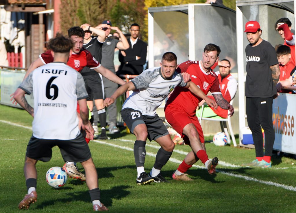 Auch nach dem Seitenwechsel gehörte Rain die erste Großchance: In der 47. Minute verfehlte Maximilian Schmidt das Tor nach einer Direktabnahme aus sechs Metern nur um Haaresbreite. Im Anschluss kontrollierten die Gastgeber die Partie, nahmen jedoch merklich das Tempo aus dem Spiel. In der 66. Minute bot sich die Doppelchance zur endgültigen Entscheidung, doch sowohl Lukas Huck als auch Etienne Perfetto scheiterten nacheinander am gut reagierenden Keeper der Gäste. Aystetten kam kurz vor dem Ende durch einen Kopfball von Ibrahim Hazem noch zu einer Gelegenheit, der Ball strich jedoch über den Querbalken. Am Ende blieb es beim hochverdienten 3:0-Erfolg.