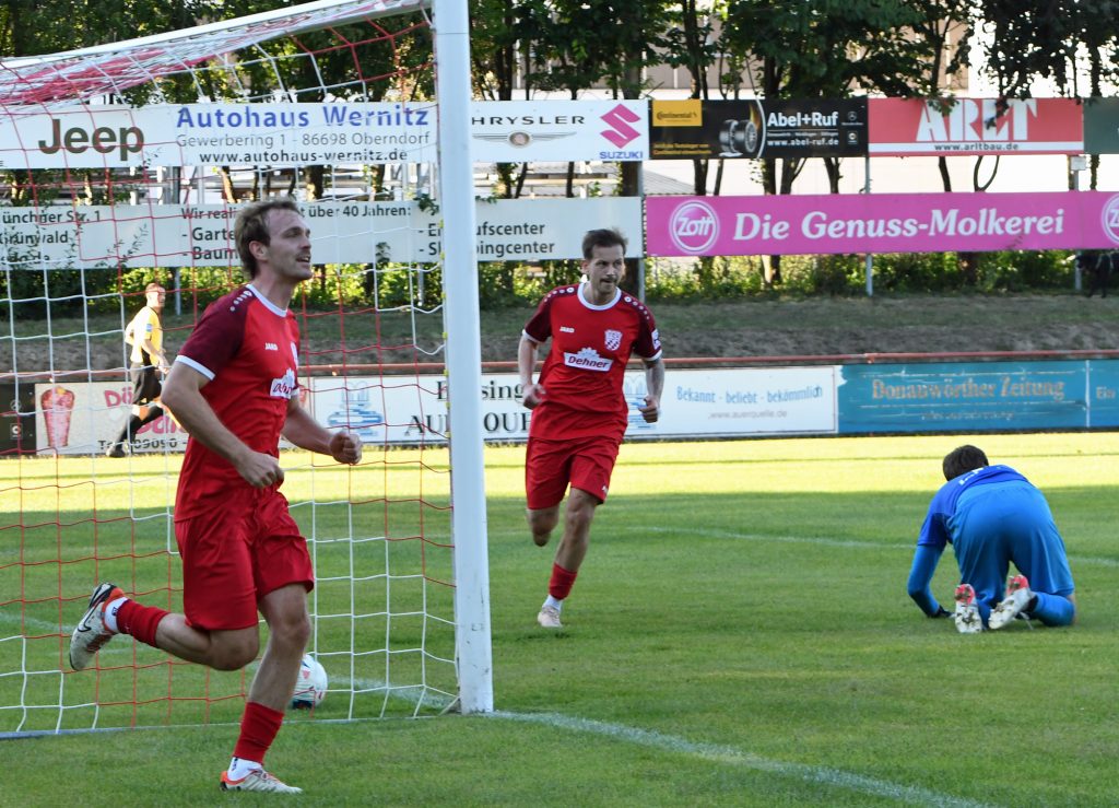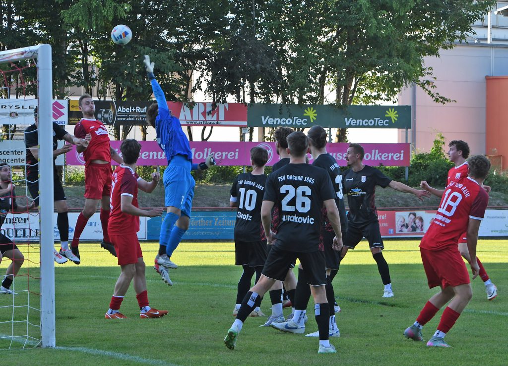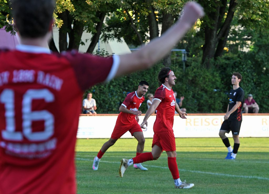 Von Beginn an war der Wille der Rainer spürbar, die Partie unbedingt für sich zu entscheiden. Schon nach fünf Minuten prüfte Michael Knötzinger mit einem Distanzschuss die Gästeabwehr, noch ohne Erfolg. Wenig später machte es Dennis Lechner besser: Nach einem starken Lauf von Gabriel Merane über die linke Seite musste der Goalgetter in der 13. Minute am langen Pfosten nur noch den Fuß hinhalten und zum 1:0 einnetzen. Nur drei Minuten später legte Paul Schmidt nach: Nach einem Freistoß lenkte Dachau-Keeper Marco Jakob den Ball an die Latte, Schmidt reagierte blitzschnell und drückte den Abpraller zum 2:0 über die Linie. In dieser Phase drängten die Hausherren auf die Entscheidung, ehe sie das Tempo nach rund 30 Minuten etwas drosselten. Die größte Gelegenheit für die Gäste hatte John Haist (31.), dessen wuchtigen Kopfball Rains Schlussmann Niklas Gordy mit einer Glanzparade entschärfte. Kurz vor der Pause dann der nächste Paukenschlag: Ein Missverständnis im Dachauer Mittelfeld nutzte Eric Adam eiskalt, eroberte den Ball und vollendete seinen Sololauf in der 43. Minute zum 3:0-Pausenstand.