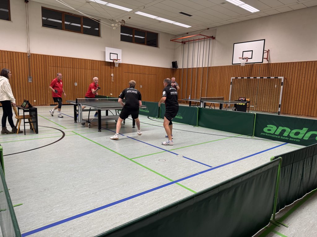 Obwohl Rains Vierte beim Derby in Oberndorf auf den weiterhin verletzten Dieter Wittke verzichten musste, gelang dem TSV-Team auf der anderen Lechseite mit einem 8:2 ein unerwartet deutlicher Erfolg beim Tabellenführer und damit nach zwei Unentschieden der erste Saisonsieg. Die Entscheidung über den Ausgang dieser Partie fiel im ersten Einzeldurchgang, in dem gleich mehrere knappe Spielverläufe zugunsten der Gäste endeten. Zuvor hatten aber erst einmal die Oberndorfer eine hart umkämpfte Auseinandersetzung für sich entschieden: Kolb/Knorr punkteten nach fünf Sätzen gegen Lang/Landes. Doch durch einen 3:1-Erfolg über Höck/Jung sorgten Böttcher/Eberhardt dafür, dass es vor den Einzeln 1:1 stand. Und da zeigten die Rainer Routiniers gute Nerven und großen Kampfgeist. Walter Lang drehte das Duell mit Werner Kolb nach verlorenem ersten Satz und machte den Sack im vierten Durchgang mit 12:10 zu. Fünf wechselhafte Sätze wurden zwischen Jürgen Höck und Gerd Böttcher gespielt, auch hier trug der Sieger das TSV-Trikot. Heiß umkämpft war auch die Begegnung zwischen Konstantin Jung und Jürgen Eberhardt, der Sieger hieß nach vier Durchgängen aber Eberhardt. Deutlich wurde es trotz des 3:0 für Ralf Landes gegen Viktor Knorr auch erst im dritten Satz. Somit hatte bereits Böttcher im Duell der Einser gegen Kolb die Chance auf den Siegpunkt und nutzte das mit einem 3:1 auch. Lang musste sich ganz knapp in fünf Sätzen Höck beugen, sodass die OBerndorfer zwischenzeitlich auf 2:6 verkürzten. Doch Landes (3:2 über Jung) und Eberhardt (3:0 gegen Knorr) erhöhten in den beiden abschließenden Begegnungen zum überaus deutlichen 8:2-Erfolg.
